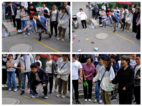 5月11日中午,h韩漫 、物理学院在将军路校区理学楼前联合举办了“阳光数理·跃动研途”研究生导学趣味运动会。校院两级创建的导学团队师生积极报名参加了集体运动项目,刘友文、王正盛等60余名导师和研究生参与了个人项目。物理学院党委书记陈修文、h韩漫 党委副书记周佼佼和老师同学们一起参加活动。