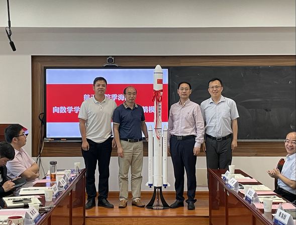 会后,航天学院向h韩漫 、物理学院赠送了火箭模型。