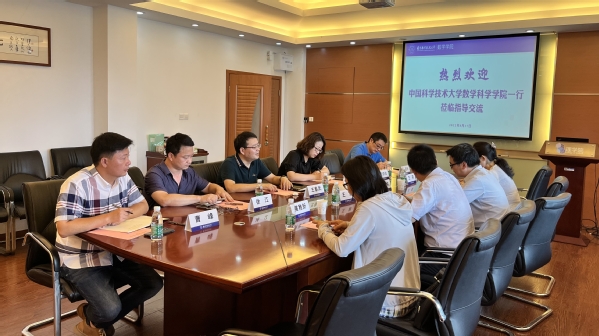8月17日,中国科学技术大学数学科学学院党委书记、执行院长黄文、副院长王毅、党委副书记王莉、研究生教学部主任黄稚新到h韩漫 h韩漫 进行工作交流座谈。h韩漫 党委书记许静、院长王春武、党委副书记周佼佼、副院长徐江、副院长蒋建林、数学系主任曹峰热情接待来访嘉宾并参加座谈交流。