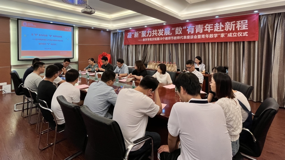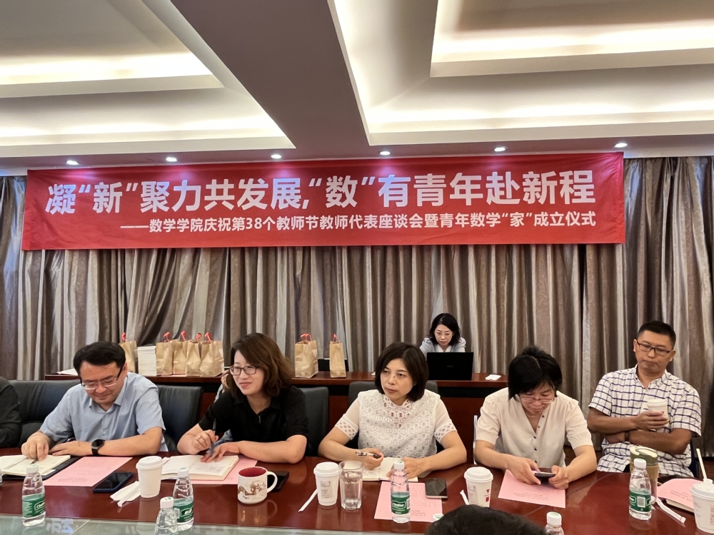 9月8日,h韩漫 庆祝第38个教师节教师代表座谈会暨青年数学“家”成立仪式在理学楼517召开,h韩漫 党委书记许静、院长王春武、党委副书记周佼佼、院长助理韩薇、龚跃政、潘茂东、吴健以及十余名青年教师参加了本次活动,活动由副院长徐江主持。
