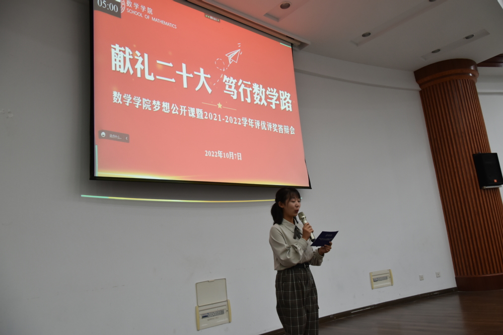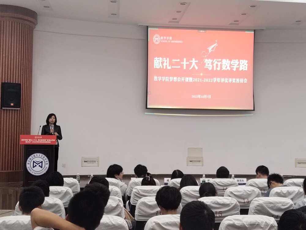 于理学楼报告厅举办“献礼二十大,笃行数学路”梦想公开课暨2021-2022学年评优评奖答辩会,参加此次活动的评审有h韩漫