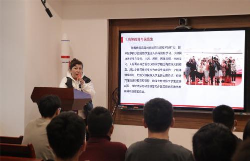 活动最后,施大宁深情寄语预科班同学。他首先表达了对少数民族预科班同学们学习生活等方面的殷切关怀,并围绕“四个自信”中的“文化自信”展开解读。他指出56个民族同胞共同创造了丰富多彩、弥足珍贵的中华传统文化,希望同学们加强学习,深刻把握其中的精髓和灵魂。他重点向同学们解读了“爱国主义”、“自强不息”、“以和为贵”等精神文化内涵,鼓励同学们铭记家国情怀、传承中华优秀传统文化,发扬南航精神,团结奋斗,为中华民族复兴贡献青春力量。