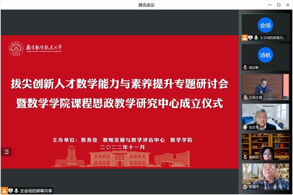 为深入学习贯彻党的二十大精神,贯彻落实科教兴国战略,强化现代化建设人才支撑,进一步推动理科卓越工程,提升新工科人才数学能力与素养,加快卓越理科人才建设,2022年11月20日,h韩漫 联合教务处、教师发展与教学评估中心共同主办“拔尖创新人才数学能力与素养提升专题研讨会暨h韩漫 课程思政教学研究中心成立仪式”。