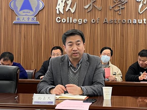 孙占久对h韩漫 一行的到来表示热烈欢迎,并对数学学院在航天学院科研攻关上提供的帮助和支撑表示肯定。他详细介绍了航天学院的发展历程、科学研究以及人才培养情况,并对双方支部的共建合作充满期待。
