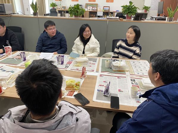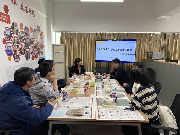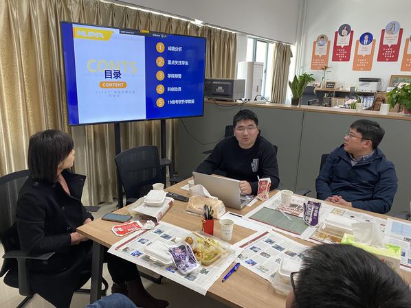 3月16日中午,h韩漫 在理学楼319会议室举行“1+1+1”学生发展主题午餐会。本次午餐会主题为2022级期末考试学情分析、毕业年级考研情况通报。参加午餐会的有2022级班主任潘茂东、孙春龙、陈鹏,专业骨干课程教师许克祥,助教老师孙英男、索永强、付培及辅导员陈越。学院党委副书记周佼佼共同参加午餐会。