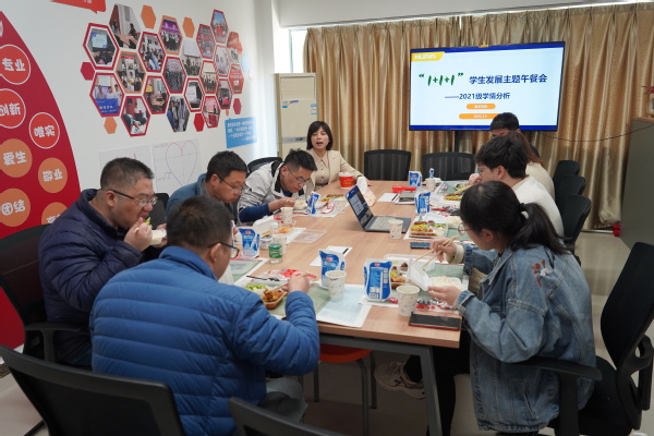 3月9日中午,h韩漫 在理学楼319会议室举行“1+1+1”学生发展主题午餐会。本次午餐会主题为2021级期末考试学情分析、毕业年级考研情况通报。参加午餐会的有2021级班主任邵华、洪旗、余迁,概率统计系主任蒋辉,骨干课程教师朱君,及辅导员戚月、胡诗帆、陈越。学院党委副书记周佼佼共同参加午餐会。