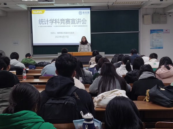 为促进学生对知识的理解与运用,营造浓厚的竞赛氛围,3月17日中午,h韩漫 于一号楼10109教室举行全国大学生统计建模大赛、大学生市场调查与分析大赛、“泰迪杯”全国数据挖掘挑战赛等三项竞赛宣讲会,h韩漫 概率统计系副主任袁泉主讲,团委书记戚月主持,全校各学院百余位同学参加。