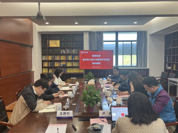 4月10日,哈尔滨工程大学数学科学学院党委书记孙荣平、院长樊赵兵、副院长郑雄波等一行四人来h韩漫 h韩漫 调研走访。h韩漫 党委书记许静、院长王春武、党委副书记周佼佼、副院长徐江、蒋建林和学院党政办相关人员出席座谈会。