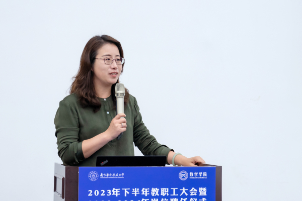 院党委书记许静传达了工信部党组书记、部长金壮龙来校调研指示精神、校党委书记郑永安在2023年下半年干部教师大会上的讲话精神、学校主题教育总结会议精神和学校警示教育大会精神。她指出,上半年,全院以学习贯彻习近平新时代中国特色社会主义思想主题教育为牵引,扎实开展“五学联动”主题学习、大兴调查研究,推动党的理论优势更好转化为能力优势、党的政治优势更好转化为发展优势。她强调,下半年,学院党委将持续深化主题教育内涵,在“从严、从紧、从实”上着力,进一步加强重点领域监督管理,持续巩固深化作风建设,坚持精准谋划,真枪“实”干;坚持正视问题,真抓“实”改;坚持高标作为,真见“实”效,凝聚全体教职工的智慧力量,埋头苦干,追求高效,力争在学院发展新征程上取得更大成绩。