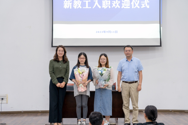 首先,学院举行了新教工欢迎仪式,为新入职教师送上鲜花,期待两位老师在h韩漫 实现自己的新发展,为学院建设贡献力量。