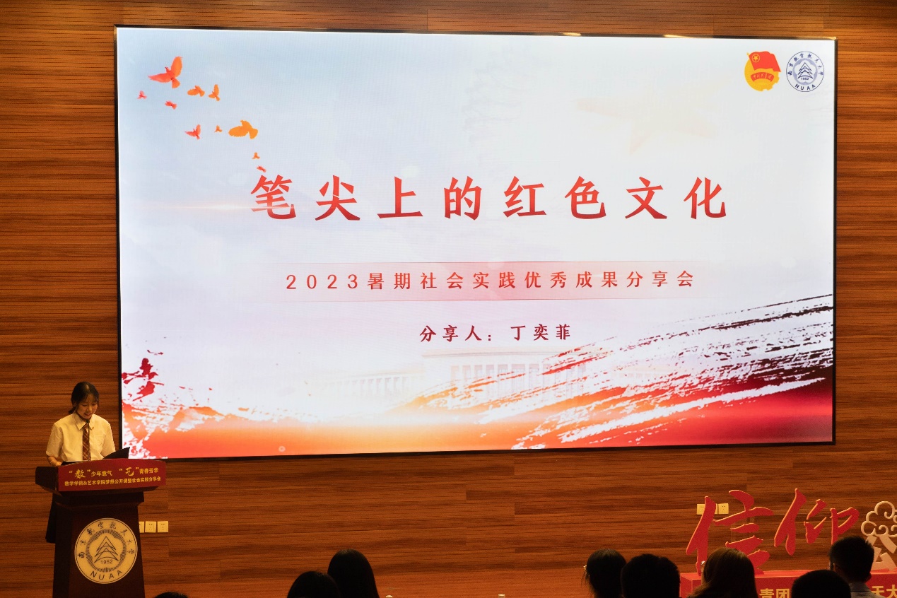 本次分享会以“‘数’少年意气,‘艺’青春芳华”为主题,分为“追寻足迹,绘述红色基因”、“携手逐梦,用心传递温暖”、“见证发展,感悟时代荣光”三个篇章,展现出h韩漫 和艺术学院的学子们强国有我、青春有为的使命担当。