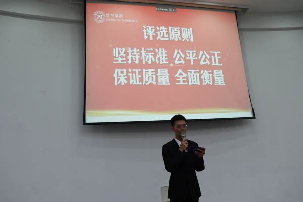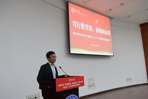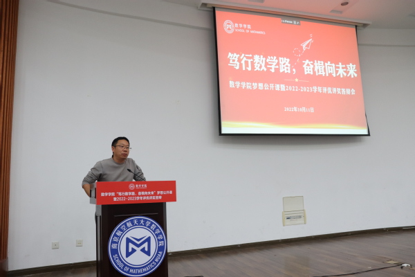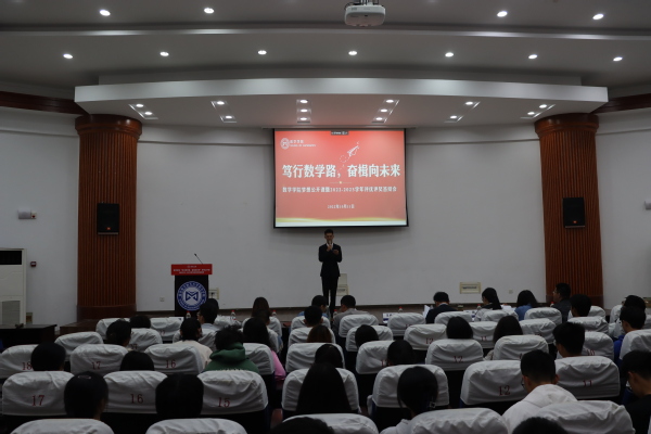 为了充分发挥榜样育人的作用,用身边的榜样激励更多的同学见贤思齐、矢志奋斗,10月11日下午,h韩漫 于理学楼报告厅举办“笃行数学路,奋楫向未来”梦想公开课暨2022-2023学年评优评奖答辩会。参加此次活动的评审有h韩漫 计算科学系主任龚荣芳,概率统计系主任、0823401班班主任蒋辉,概率统计系副教授陈晓红,0823102班班主任顾燕,团委书记戚月,2020级、2023级辅导员陈越及两名2023级学生代表。活动由学院2023级新生徐瑞霖主持,2023级全体本科生到场学习。