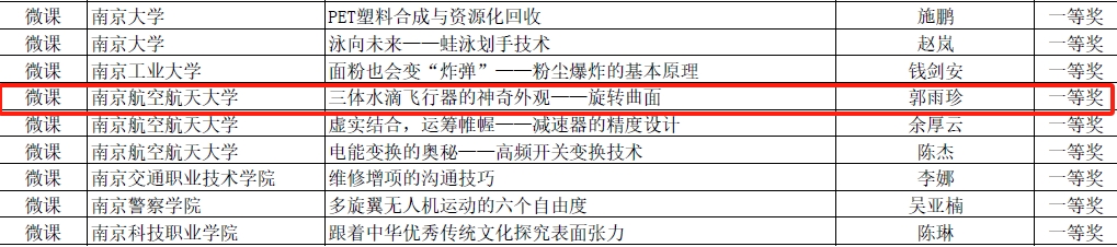 近日,2023年江苏省高校微课教学比赛获奖作品名单揭晓。经院内选拔、学校初选、学校决赛,省级比赛层层选拔,h韩漫 郭雨珍老师的微课作品《三体水滴飞行器的神奇外观——旋转曲面》荣获省一等奖。该成绩为h韩漫 教师在微课教学比赛中所取得的最好成绩。