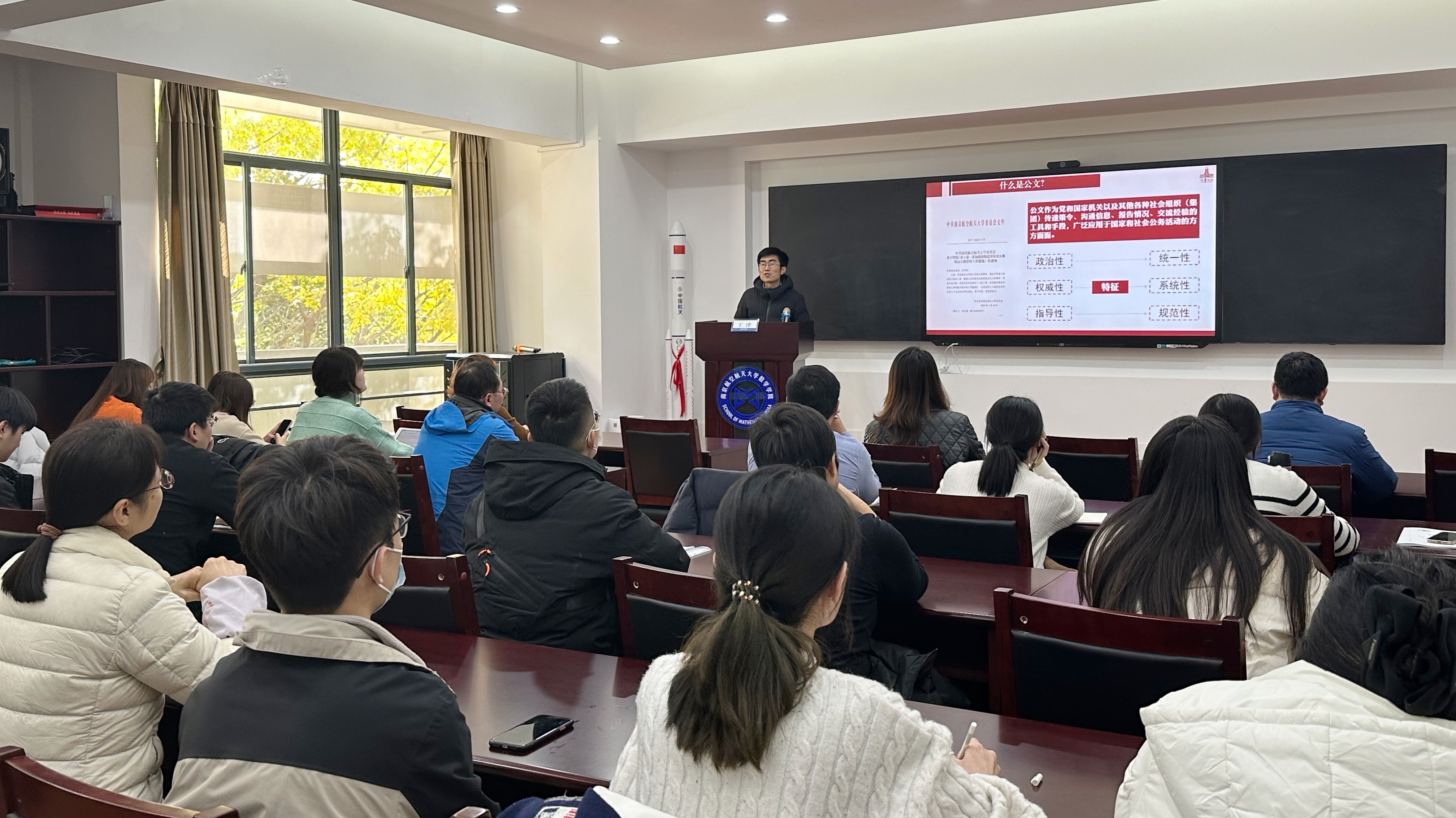 为深入学习贯彻党的二十大精神,切实提高学院公文写作能力,更好发挥以文辅政的职能作用,不断提升工作质效和实效,12月1日,h韩漫 开展“廉政领导力”暨“党政业务能力提升研习坊”,邀请校团委副书记王洋作《漫谈公文写作的认识与思考》专题培训。班子成员、院长助理、支部委员、辅导员、机关人员及学生干部30余人参加,培训由院党委书记许静主持。