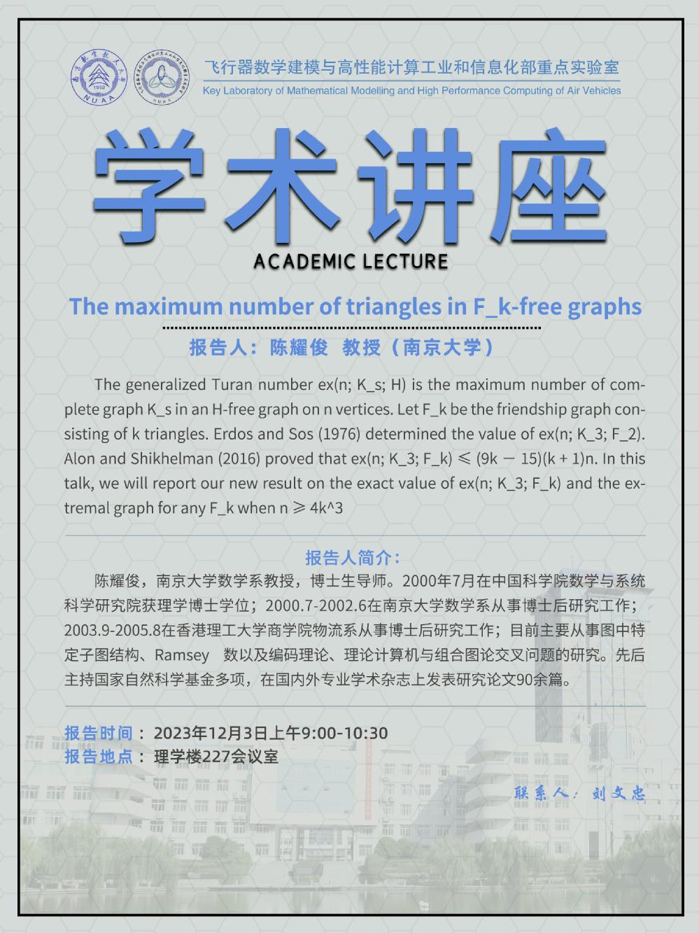 【学术讲座12.3 陈耀俊 南京大学】