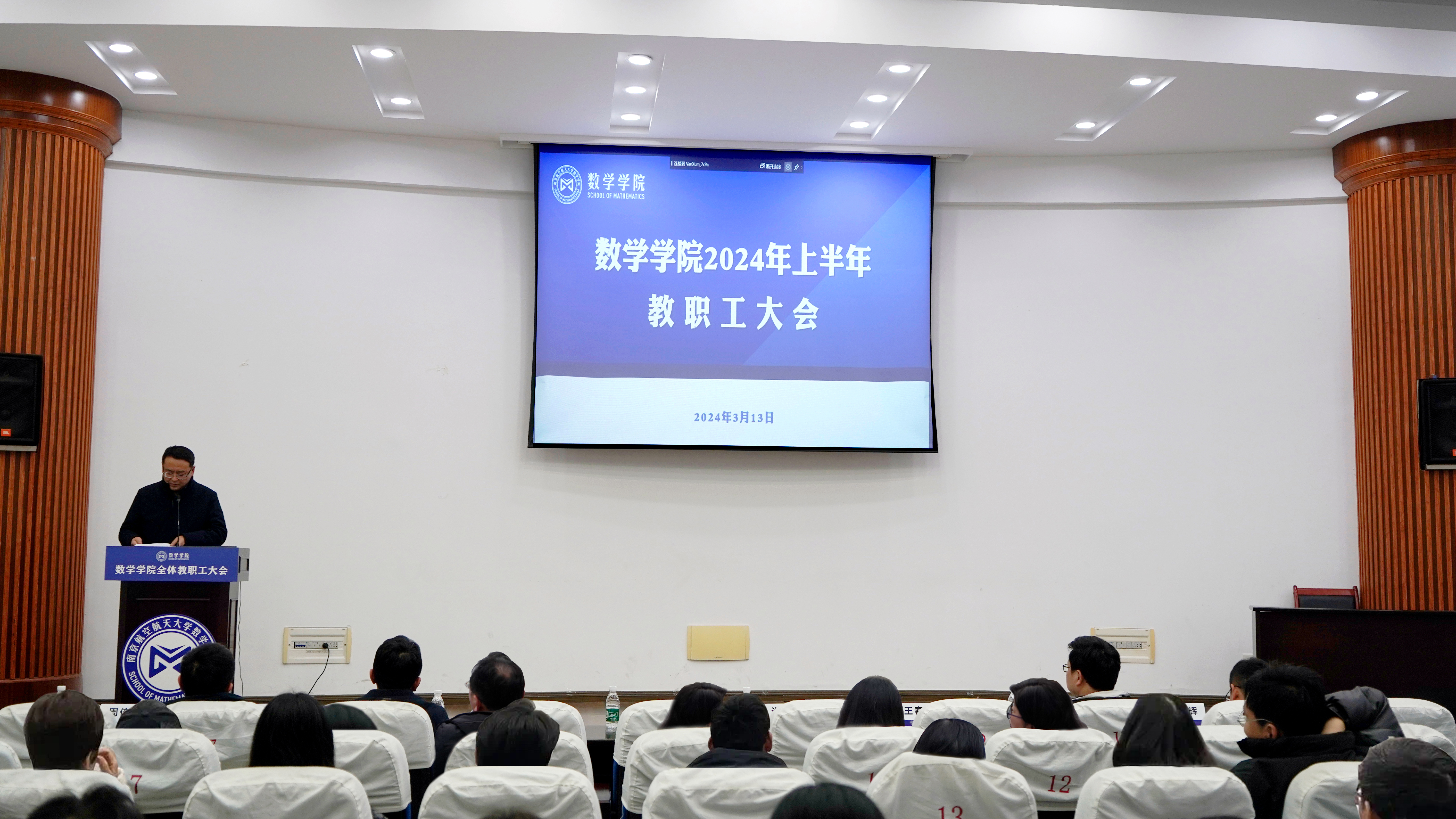 院长王春武首先传达了学校2024年干部教师大会精神。他强调,2024年是实现“十四五”规划目标任务的关键一年,全院上下要以高度的责任感、使命感、紧迫感,紧扣学校“高质量发展年”主旋律,再接再厉、攻坚克难,深化“特色立院、科学治院、人才强院、文化润院”发展战略,深入推进“理科卓越工程”,以新担当、新作为为学校高质量发展贡献力量。随后,他围绕学科建设、人才引培、开放办学等内容对学院2024年重点工作进行布置。