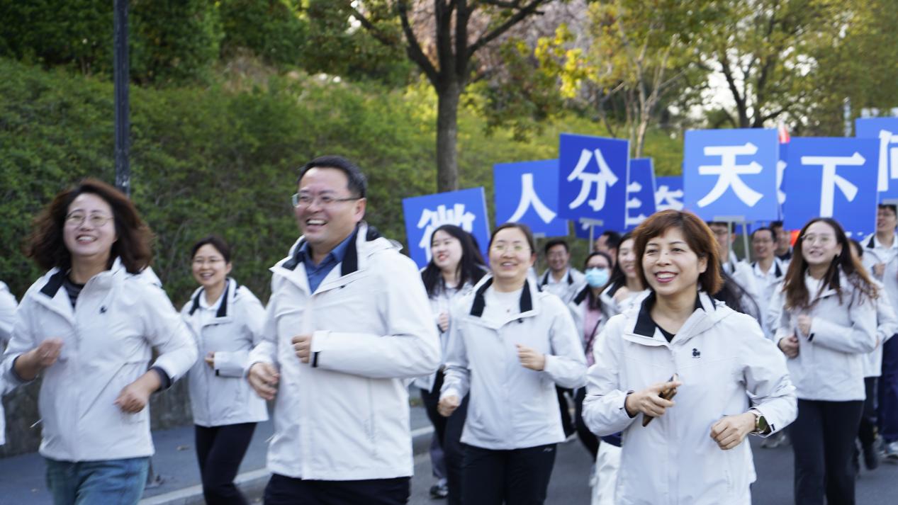 下午,在学院党委书记许静、院长王春武、副书记周佼佼、副院长蒋建林的带领下,老师们在院楼前集结整队,统一着装、精神抖擞地前往西操场。随着学校发令枪响,学院长跑队伍以四路纵队整齐有序排列出发。一路上,老师们情绪高昂、神采飞扬,迈着坚定的步伐不断奔跑向前,“微分天下,人生几何;魅力数院,奋勇争先”的嘹亮口号声响彻校园。老师们用脚步丈量校园风光,用汗水书写健康的篇章,不仅诠释了团结的力量,更为校园增添了无限活力。