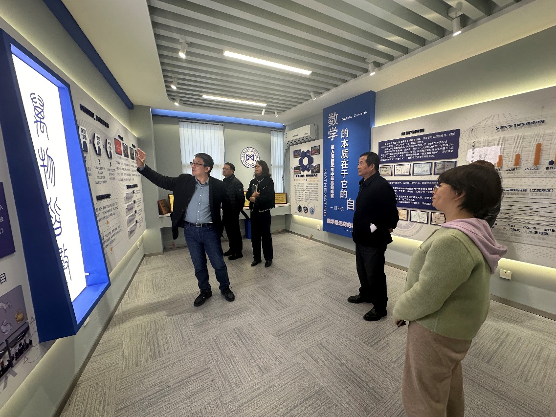 随后专家组参观了“万物皆数”数学核心素养赋能示范主题创新区,该主题创新区旨在提高学生数学创新实践能力、培养自主学习能力、推动多学科交叉,集学习性、应用性、研究性和创新性为一体。