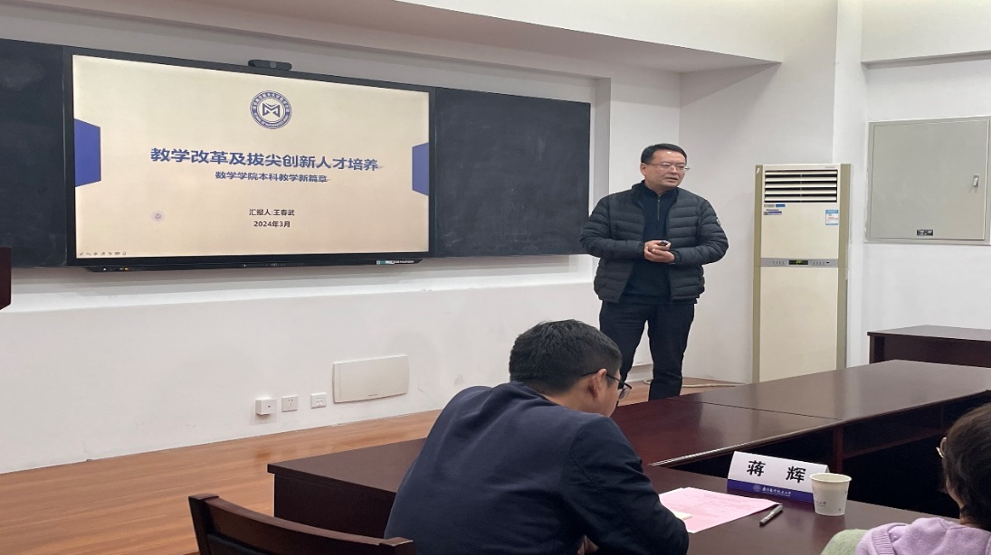 为高质量迎接教育部新一轮本科教育教学审核评估,扎实推进学院自评自建工作,数学学院于3月19日至27日组织开展本科教育教学审核评估院内预评估工作。根据学校要求,预评估分为线上评估和入院评估两个阶段。3月27日下午,学院召开院内预评估专家入院评估及意见反馈会,院领导班子、院长助理、系/中心主任、专业负责人、学院督导及教学办、学工办人员参加了会议。会议由蒋建林主持。