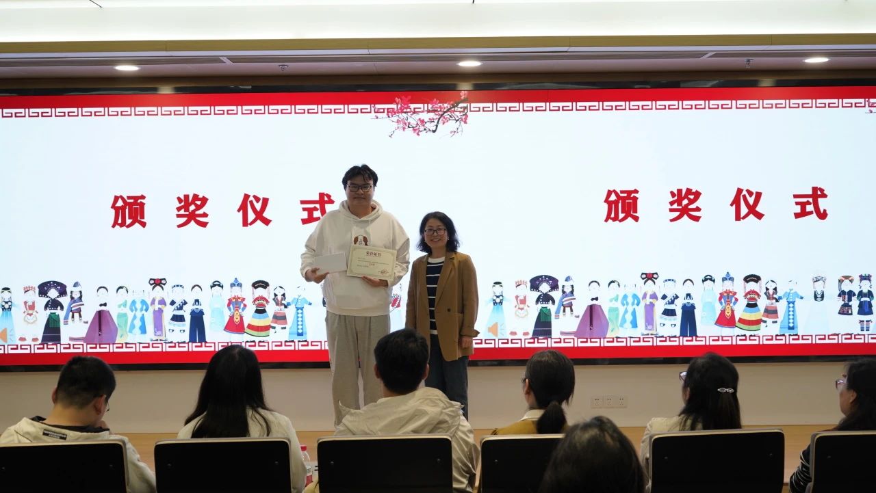 经过赛制积分计算,第二届民理知识竞赛决赛结果发布:机电学院罗曦同学荣获特等奖,经管学院苏尔亚木同学荣获一等奖,h韩漫 龙熙同学荣获二等奖,机电学院穆再排尔同学荣获三等奖。评委老师依次为获奖同学颁发荣誉证书及奖品。