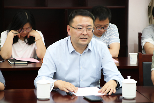 会议伊始,院长王春武介绍了戴华老师在南航任职的经历,戴华老师在南航坚守讲台30余年,先后讲授不同的数学课程20多门,始终耕耘在教学一线,培养了计算数学专业硕士、博士70多人。戴华老师把理想“浇灌”在三尺讲台,见证了一代代青春,他在自己的三尺讲台上,践行着对教育事业的庄严承诺,浇灌培育出了“桃李满天下”的芬芳。