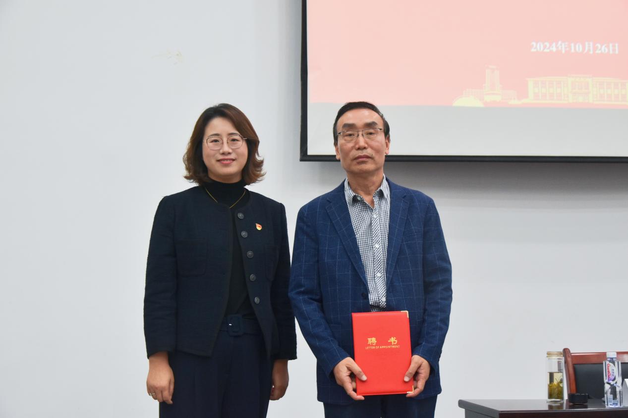 为推动思想政治教育走深走实,公开课上,h韩漫 党委书记许静为王金水教授颁发“h韩漫 思政导师”聘书。