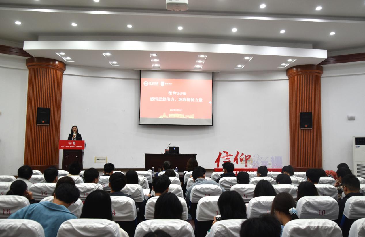 党委书记许静、党委副书记王亚鹏,物理学院团委书记梁欢,两学院本科生辅导员及120余名学生现场参与,本次信仰公开课由王亚鹏主持。