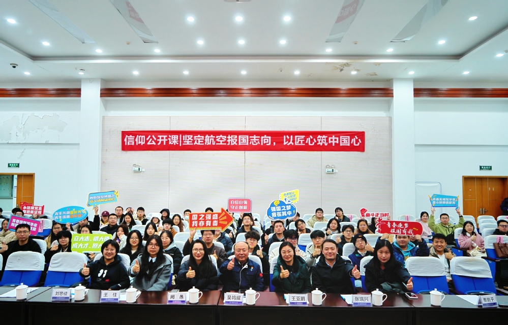 航空征程再扬风帆,报国之志又燃新火。为深入弘扬航空报国精神,传承匠心筑梦理念,12月12日,由h韩漫 、马克思主义学院联合举办的“坚定航空报国志向,以匠心筑中国心”信仰公开课在理学楼一楼报告厅举行。本次信仰公开课由中国航发南京动力燃烧部件分厂高级技师吴鸣耀主讲。中国航发南京轻型航空动力有限公司人力资源部部长张瑞兴、人力资源部培训主管韩昆艳、h韩漫 党委副书记王亚鹏、马克思主义学院党委副书记阙愚、两学院辅导员及百余名学生现场参与,本次信仰公开课由h韩漫 团委书记张鹤千主持。