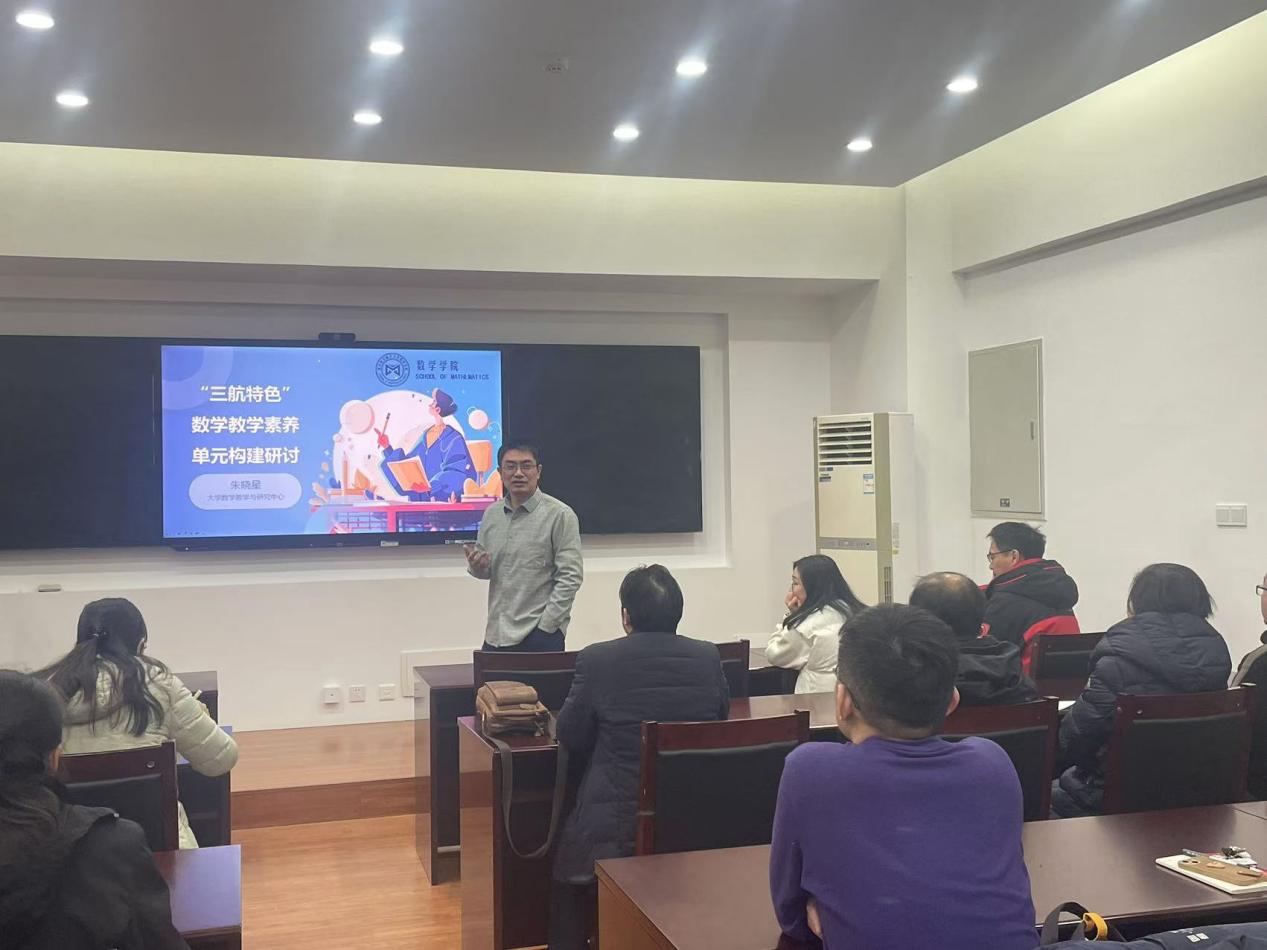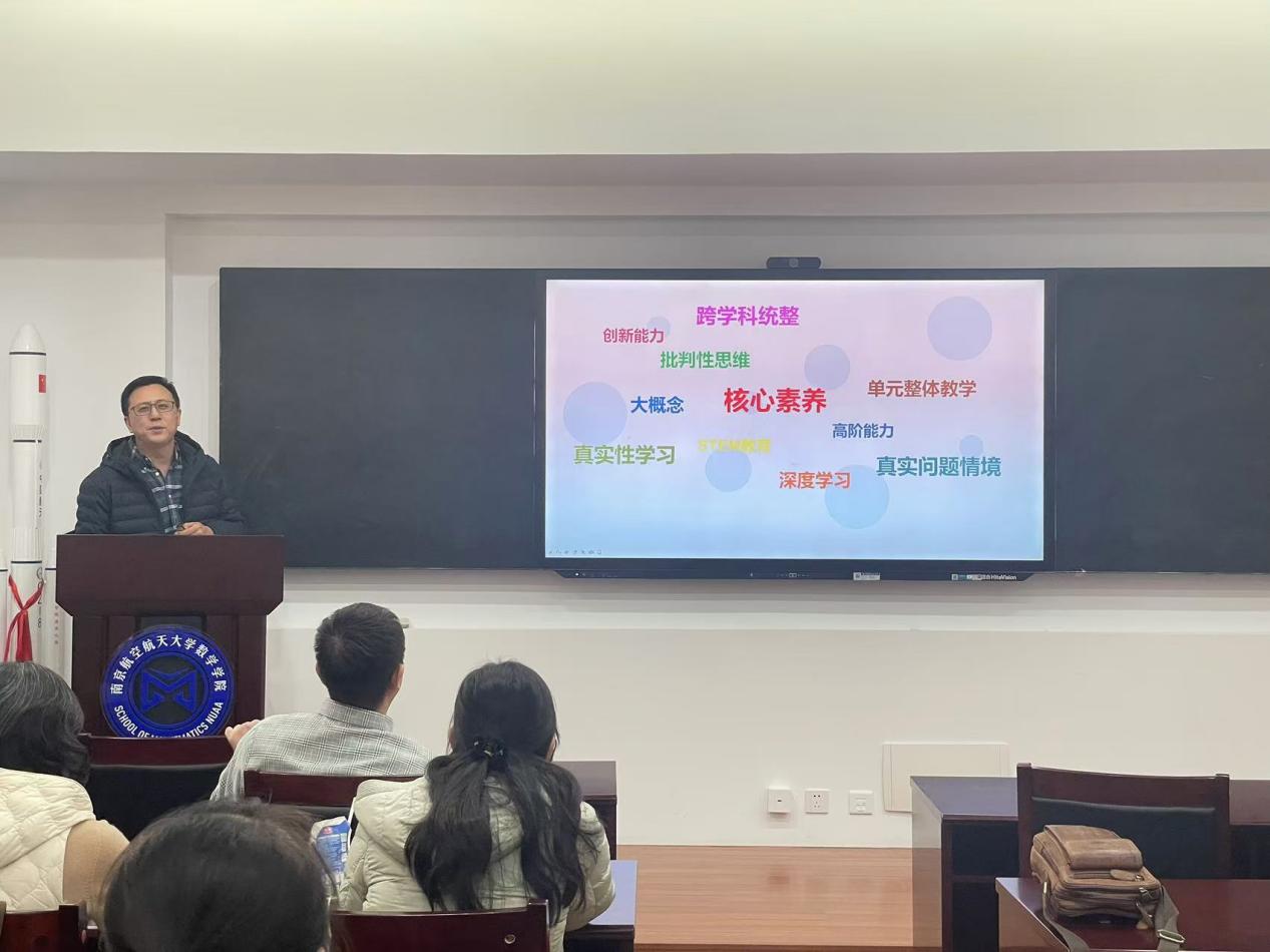 蒋建林首先对大家的到来表示欢迎,并简要介绍了本次活动的背景和目的。他指出,随着教育改革的不断深入,数学教学已经逐渐从传统的知识点传授转变为更加注重学生素养的培养。特别是在“三航”特色教育背景下,如何构建符合时代要求、具有行业特色的数学教学素养单元,是当前数学教学面临的重要课题。