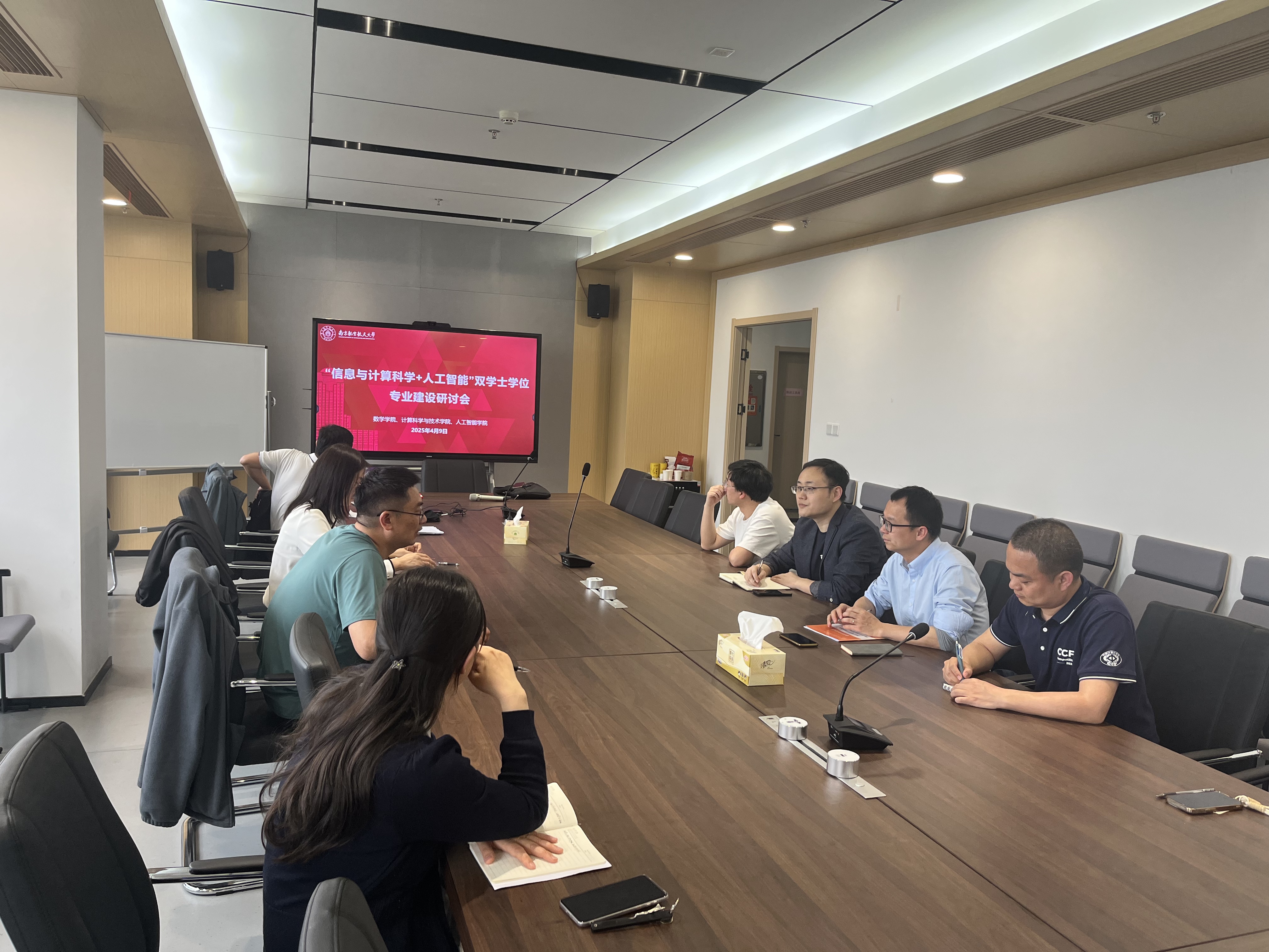 为推进交叉学科专业建设,提高复合型人才培养质量, 4月9日下午,h韩漫 联合计算机科学与技术学院/软件学院、人工智能学院召开"信息与计算科学+人工智能"双学士学位专业建设研讨会。计算机科学与技术学院/软件学院副院长李鑫,人工智能学院副院长朱旗,h韩漫 副院长蒋建林、党委副书记王亚鹏及各学院相关专业负责人、院长助理等参会。会议由蒋建林主持。