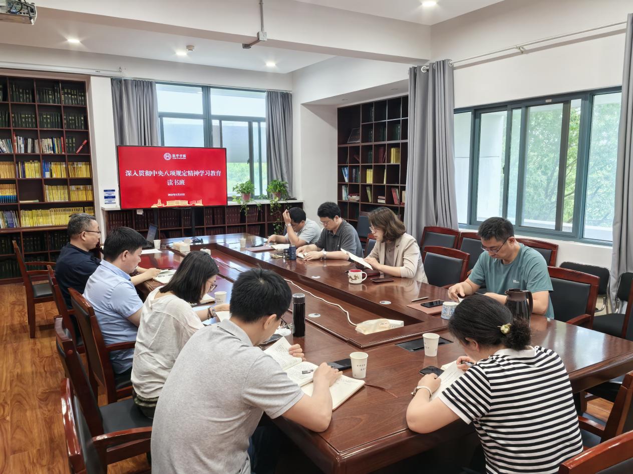 为深入贯彻中央八项规定精神,以优良作风护航学院高质量发展,5月15日,h韩漫 开展深入贯彻中央八项规定精神学习教育读书班暨理论学习中心组(扩大)学习会。学院党委理论学习中心组全体成员、党委委员、教工党支部书记参加学习,学习会由党委书记许静主持。