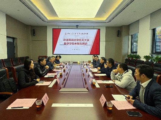 10月31日上午,调研组走进中航工业自控所,研究所原副总工程师、南航校友王永,人力资源部副部长索玉娟等参加活动。索玉娟介绍了自控所发展历程、核心业务及科研成果,并指出企业在技术研发中对数学人才的现实需求。双方聚焦校企协同育人与科研合作,就联合申报科研项目、共建校企双导师机制、开发企业实践课程以及党支部共建等具体事项进行了务实磋商,并在多项合作上达成初步意向。