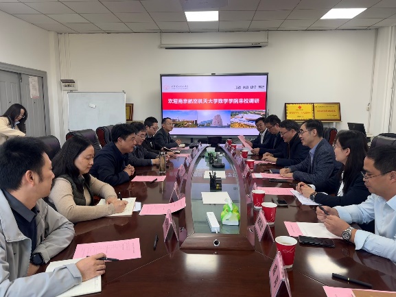 10月30日上午,调研组首站访问西北工业大学数学与统计学院,学院党委书记王莉、院长聂玉峰等领导参加交流。聂玉峰从学科建设、师资队伍、人才培养、科学研究、国际合作与交流等关键维度,系统介绍了学院的创新实践路径和标志性发展成果。王莉聚焦党建引领发展主线,分享了将党建工作深度融入学院治理、师资队伍建设与人才培养全过程的特色做法与宝贵经验。双方围绕拔尖创新人才培养、校友资源联动、国际化办学拓展和高水平师资引育等议题进行了深入研讨。