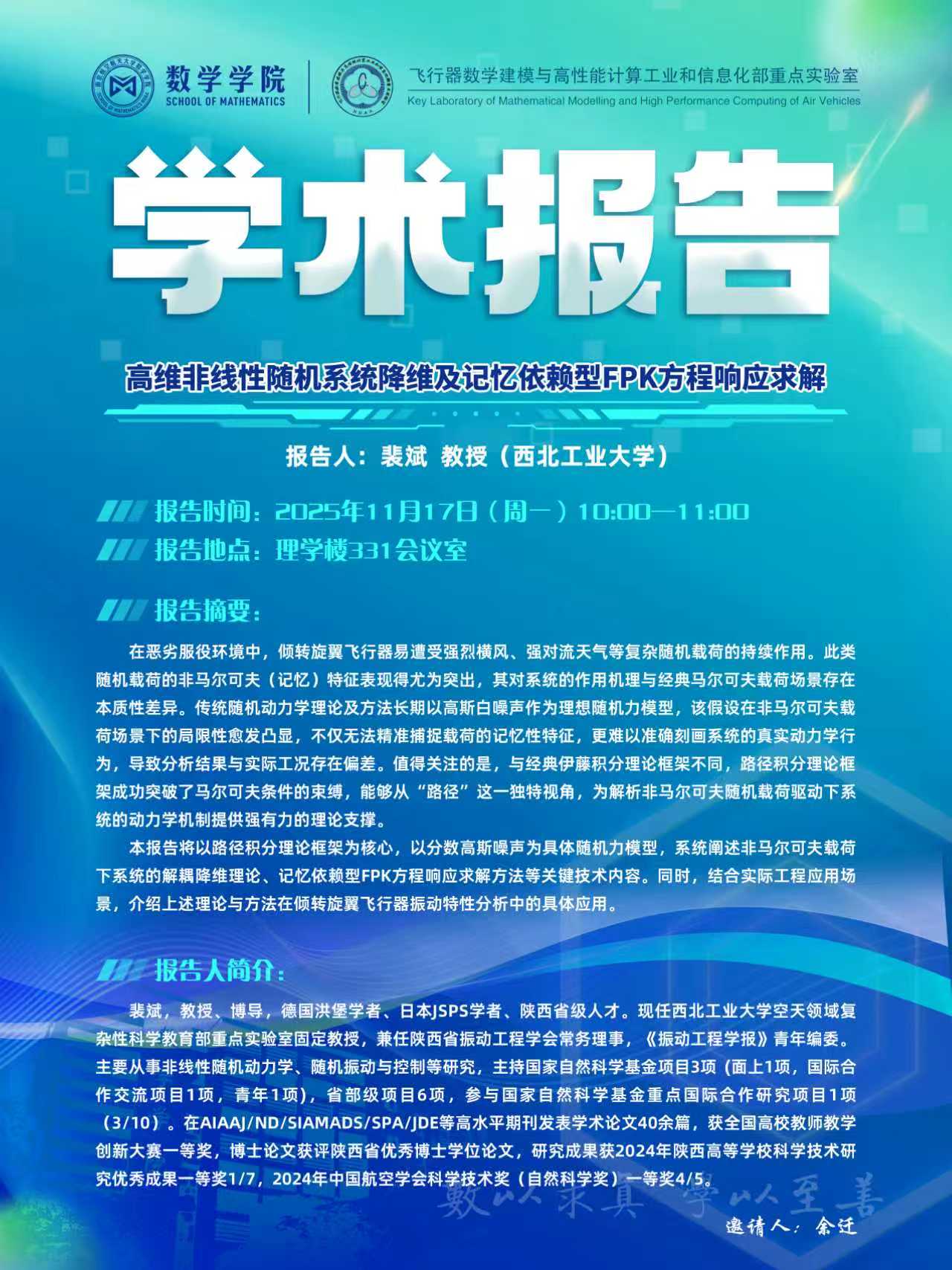 【学术讲座11.17 裴斌 西北工业大学】