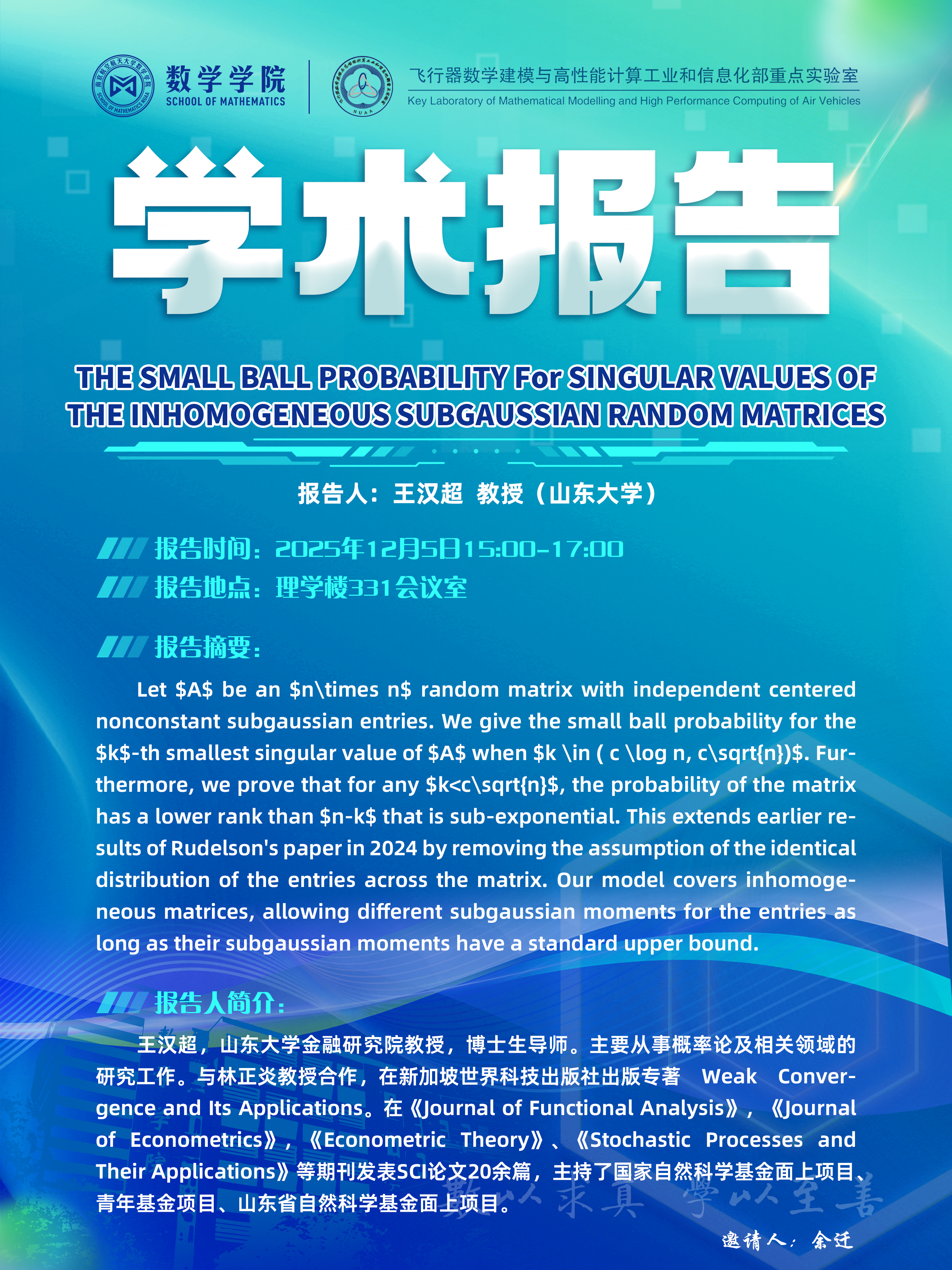 【学术讲座12.5 王汉超 山东大学】