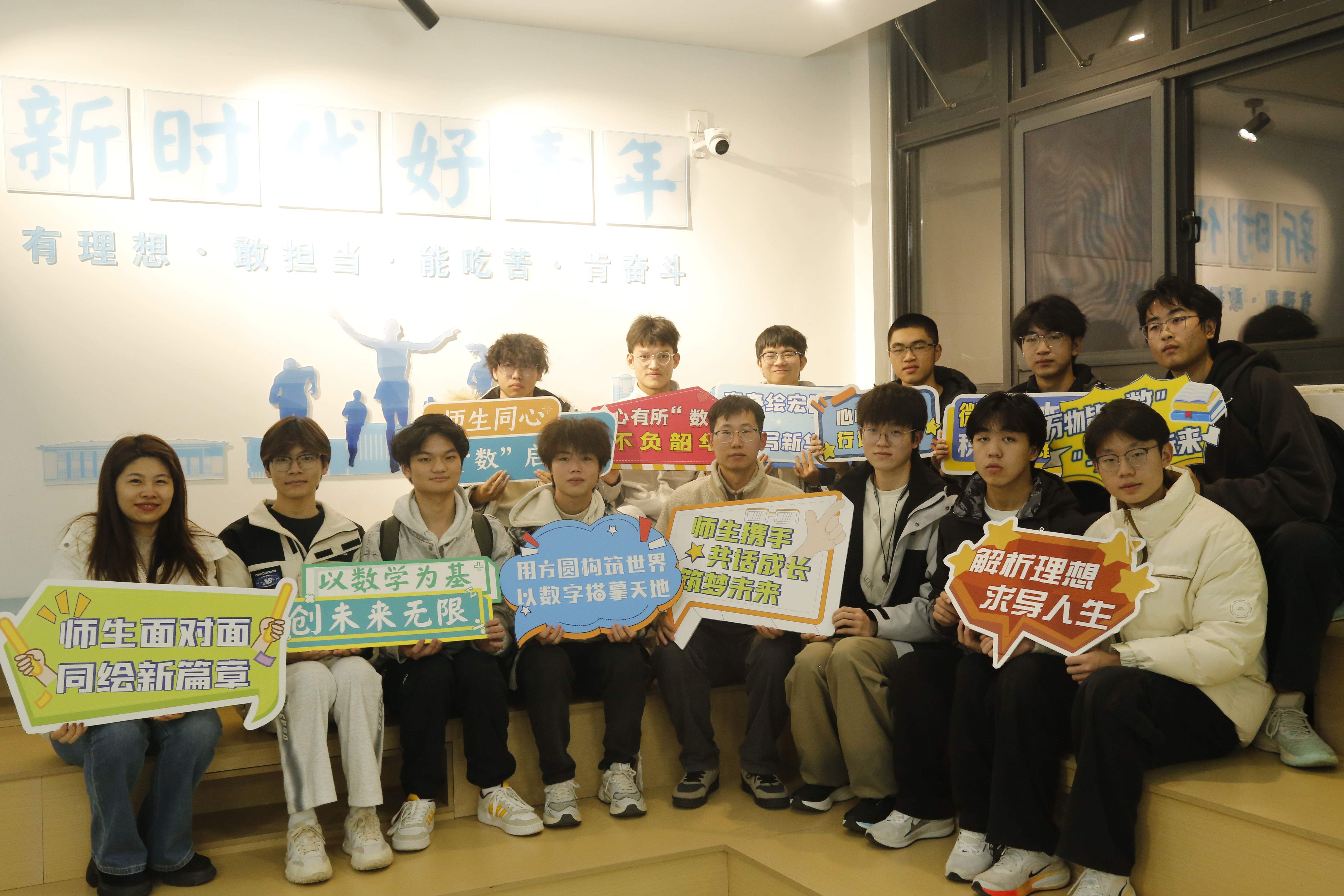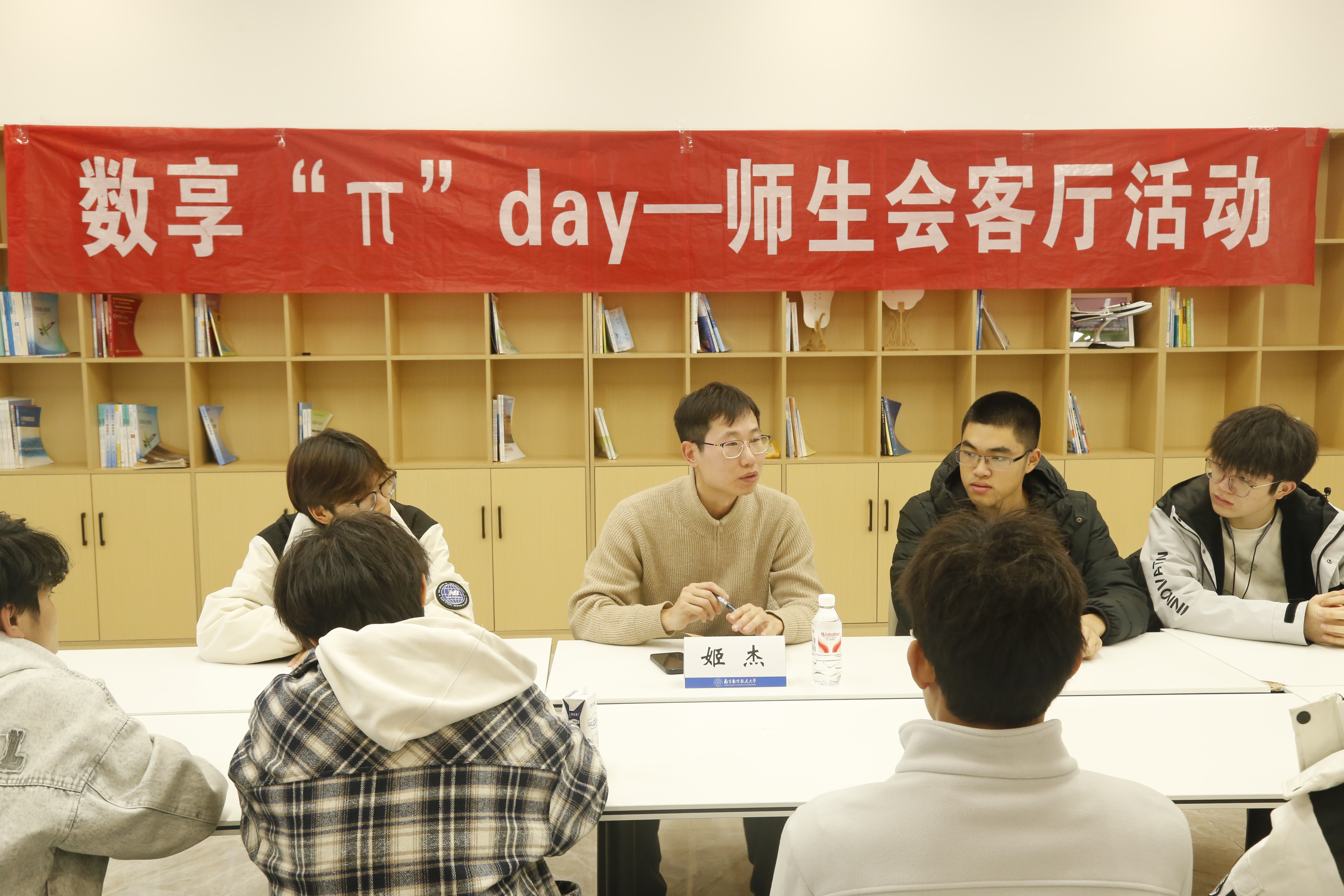 12月15日,h韩漫 在天目湖校区一站式学生社区举办数享“π”day—师生交流座谈会。学院数学系教师姬杰、辅导员伍琳玲以及2025级本科生代表参加此次活动。