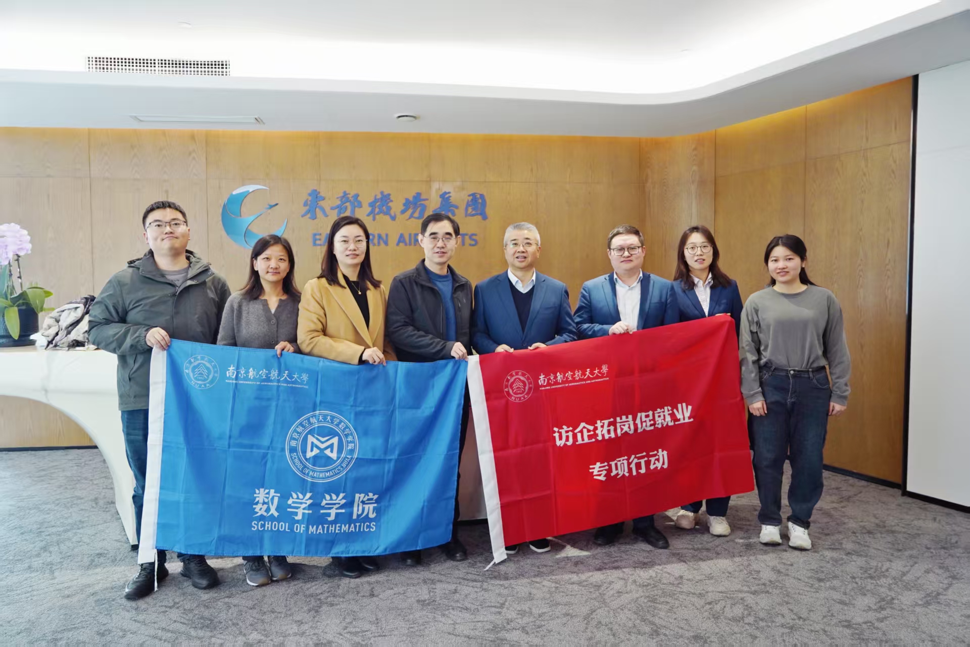 为深化校企合作、促进产学研融合发展,12月18日上午,h韩漫 党委书记张跃带队,党委副书记王亚鹏、概率统计系副主任陈鹏、教师贺婕、计算科学系教师宗辰、辅导员周子恒一行,赴东部机场集团开展访企拓岗促就业专项行动。